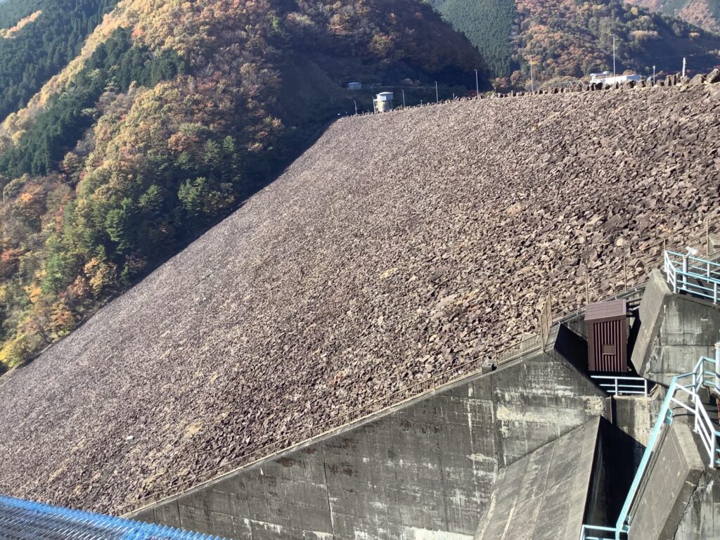 ロックフィルダムとは、岩石や砂利・土砂を積み上げて堤体をつくる方式のダムのことで、コンクリート主体の重力式とは構造が大きく異なります。岩屋ダムは、その中でも日本でも屈指の規模を誇るダムとして知られています。