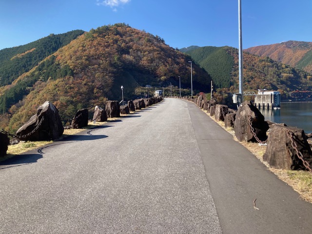 ダムの上をゆっくり走り、対岸へ