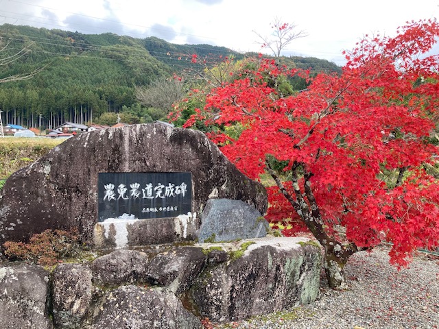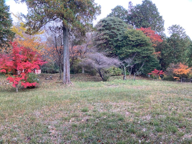 帰りは下りが中心で、小さな公園に立ち寄ると鮮やかな紅葉が目を楽しませてくれました。さらに友人の一人が「桜が狂い咲きしとるぞ」と声を上げ、見てみると確かに桜のような花が咲いていました。狂い咲きに違いないが、それもまた良し。
