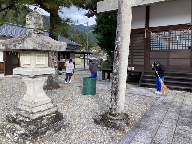 ここで驚いたのは、集団下校後の中学生たちが境内を掃除していたことです。