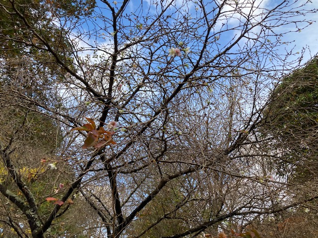 帰り道の紅葉と“季節外れの桜”