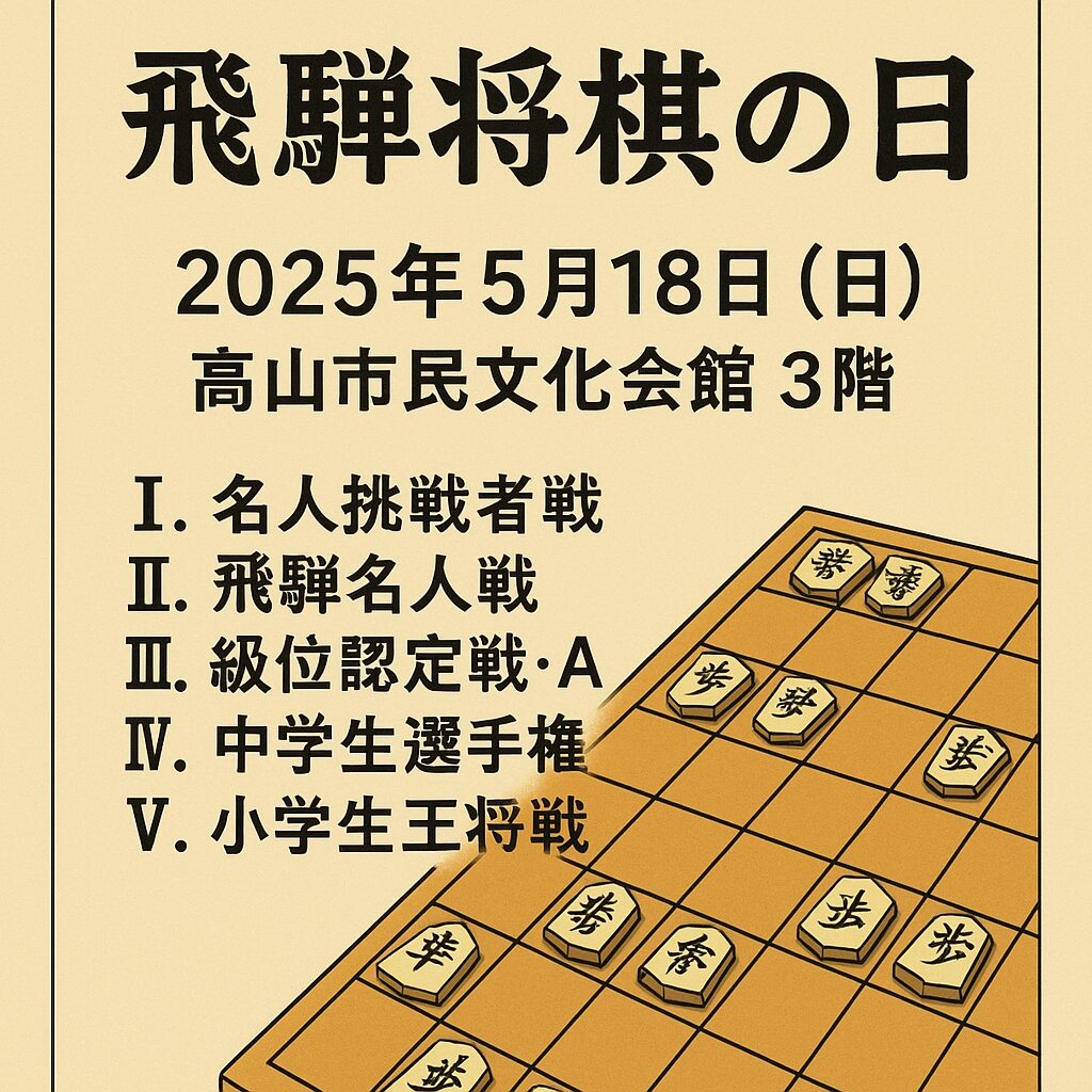 内容は、2025年5月18日(日)に開催される**将棋大会「飛騨将棋の日」**の案内です。